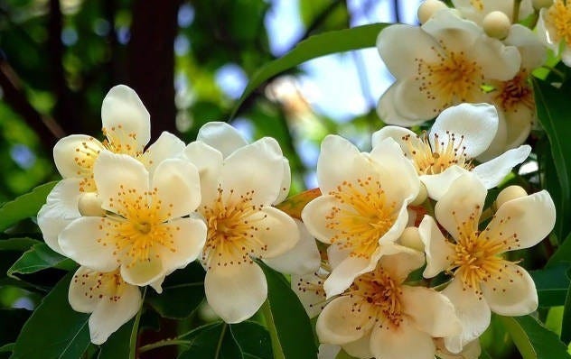 Muhe 木荷, or “wood lotus” is a type of jasmine, which grows profusely both in Luofushan and Hainan Island. It blooms in early summer and is known as the “Guardian of the Forests”.